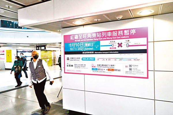 港鐵明日停旺角東至紅磡服務紅磡站出閘免費設接駁巴士 17 46 20210109 港聞 即時新聞 明報新聞網