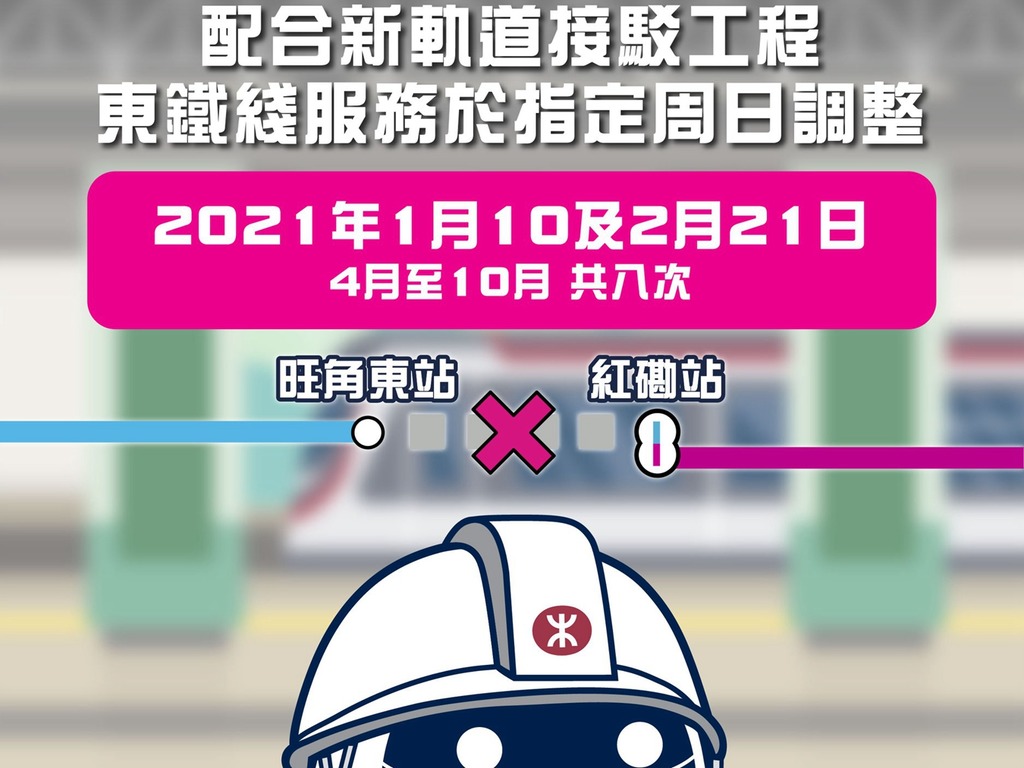 為配合沙中綫下的東鐵綫伸延過海紅磡站將有10個指定星期日暫停東鐵綫旺角東站至紅磡站的服務 港鐵表示第6次暫停服務日已 配合東鐵綫過海段工程 旺角東至紅磡站74再停服務即時新聞港澳oncc東網. 因東鐵綫過海段新軌道接駁工程東鐵綫來往旺角東至紅磡站的列車服務今日13日全日暫停港鐵提供安排免費接駁巴士來往九龍 東鐵綫來往旺角東至紅磡全日停駛 市民斥不便阻看演唱會即時新聞港澳oncc東網. 港鐵表示為配合東鐵綫過海段的新軌道接駁工程東鐵綫來往旺角東至紅磡站的列車服務將於星期日暫停 港鐵呼籲乘客為行程預留充裕時間及.