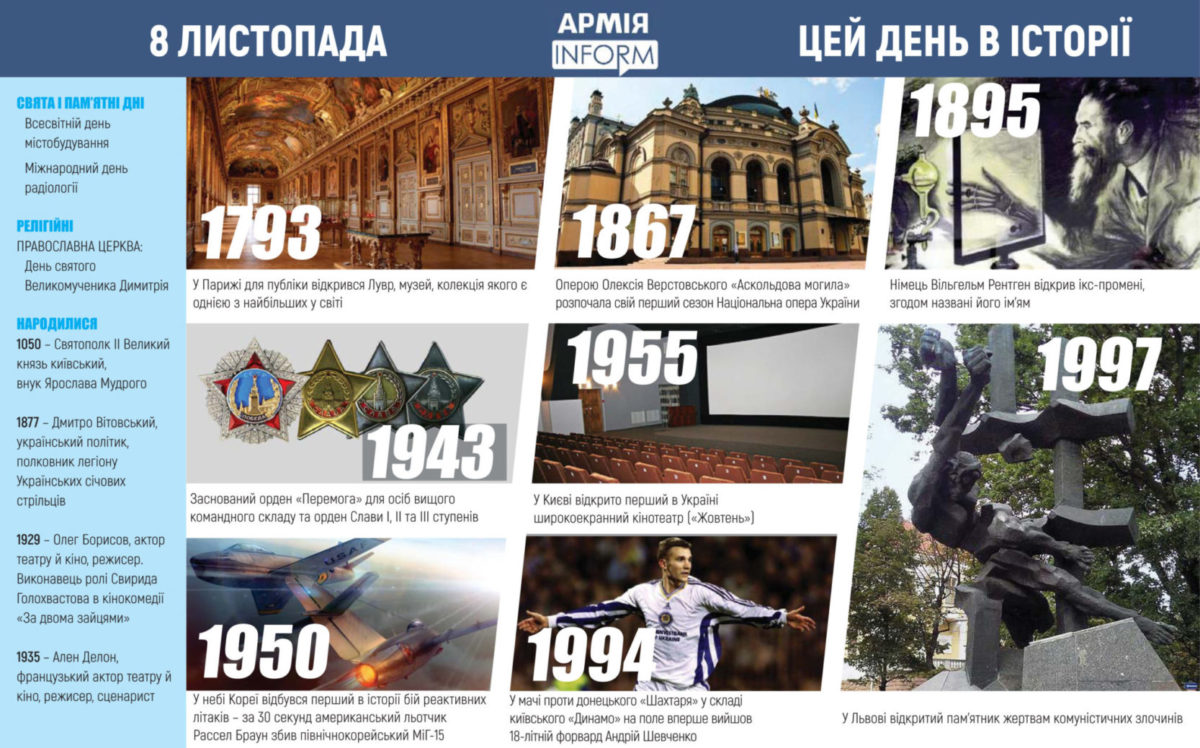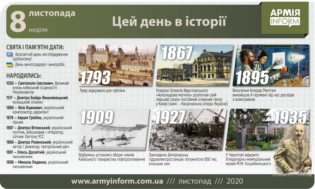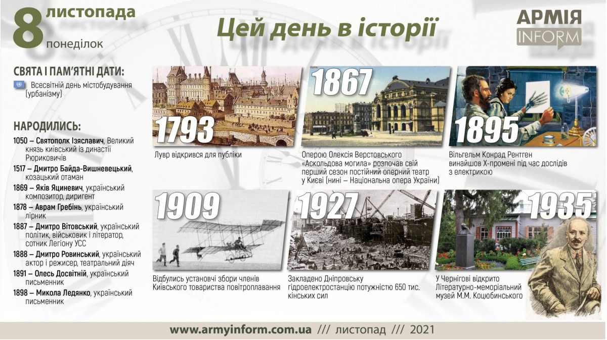 ВікіпедіяПроєктЦей день в історі. 8 листопада в історії України. Цей день в історії Новини війська.